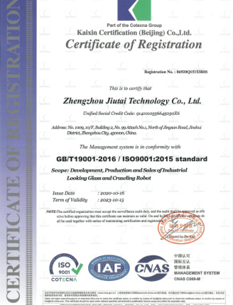 Zhengzhou JiuTai Technology Co.ltd. es una empresa de alta tecnología especializada en la investigación y desarrollo, producción, venta de endoscopios en la industria y proporcionar soluciones personalizadas para los clientes, establecida en 2010. Nuestra empresa se centra en la alta tecnología industrial internacional, hasta ahora la empresa solicitar más de 60 patentes, muchas tecnologías están en la posición de liderazgo en el mundo. Obtuvimos el certificado de empresas de alta tecnología en 2016. Al mismo tiempo, la empresa registró muchos derechos de autor de software.